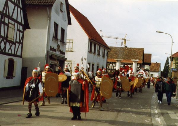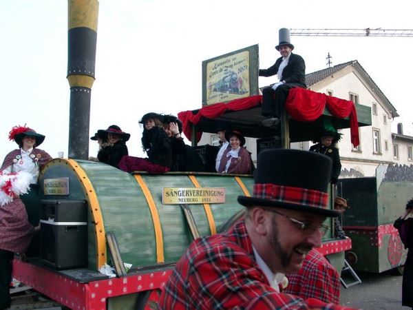 Im Jahre 1993 wurde von einer Interessengemeinschaft der Rosenmontagsumzug in Neuburg wieder zum Leben erweckt. Was zuvor in kleineren Gruppen wahllos durch die Straßen zog, wurde ab diesem Zeitpunkt zu einem echten Highlight. Von Jahr zu Jahr wird der Umzug größer, waren es 1993 noch 25 verschiedene Gruppen, so sind es aktuell 40. Die Sängervereinigung nimmt immer mit einem Motivwagen und der passenden Gruppe teil. Damit sich der große Aufwand auch lohnt beteiligen wir und auch noch an den Umzügen in Hagenbach (Faschingsdienstag) und Berg (Faschingssonntag). Unsre bisherigen Mottos waren: